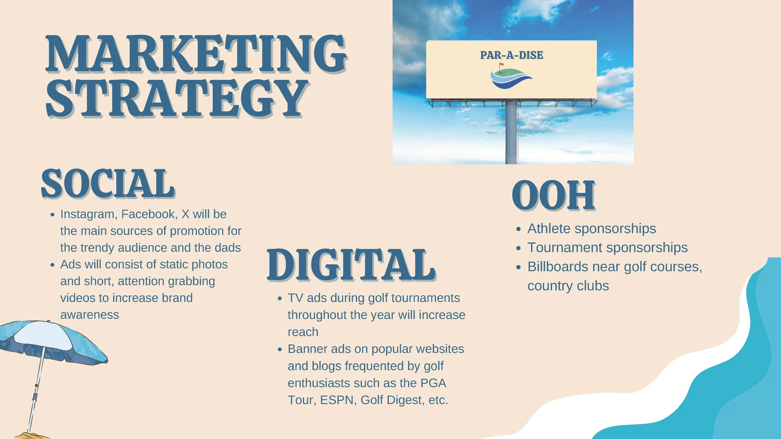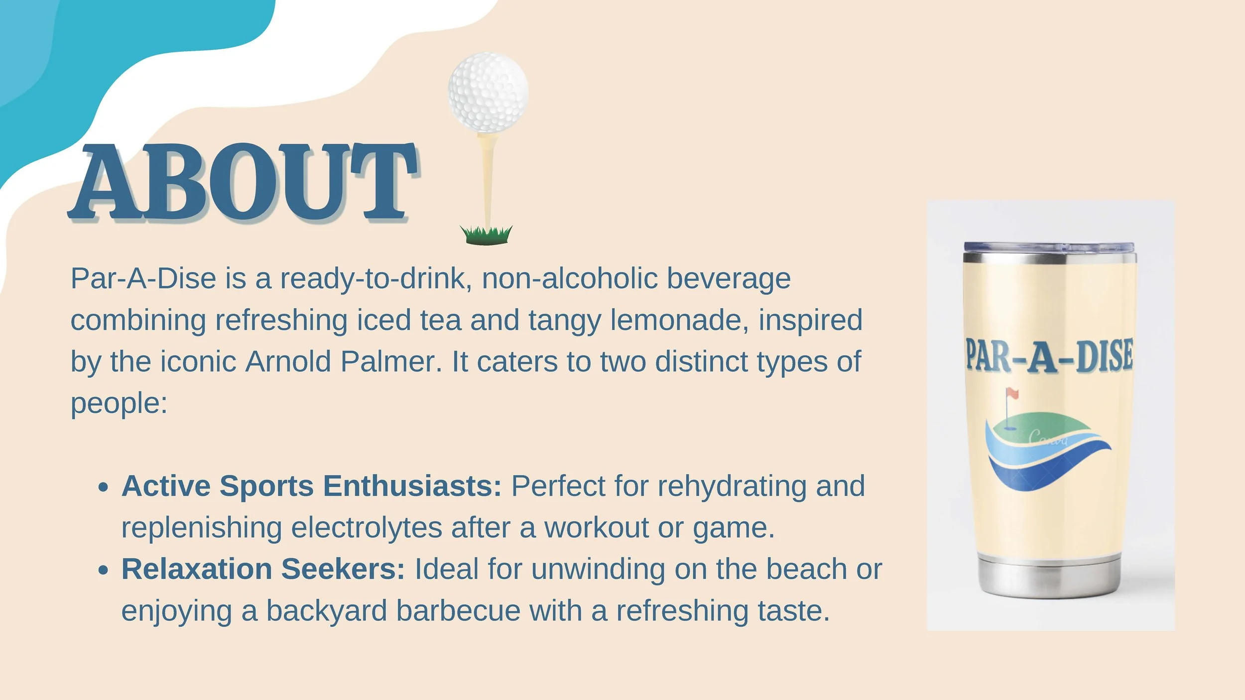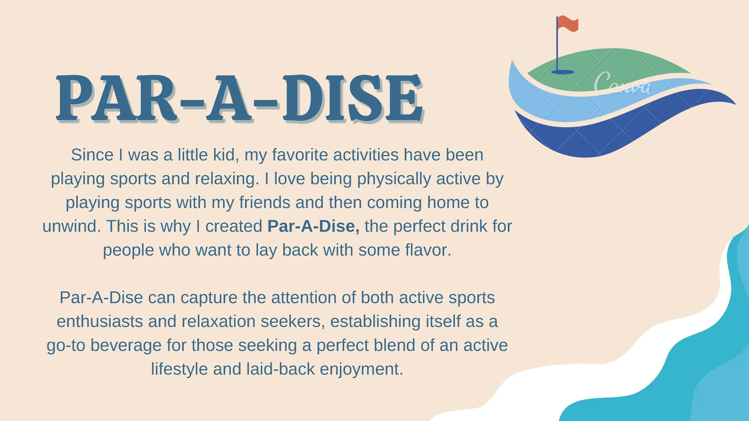 PAR-A-DISEIn this project, I created a drink aligned with my personality. I combined my love of golf with my relaxing mindset. This beverage allowed me to portray who I am while showing my understanding for core marketing concepts.